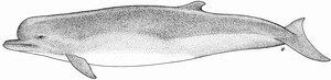 Pacific bottlenose whale Image Credit:FAO Fisheries Global Information System River-dolphins are considered to be “primitive” dolphins retaining the slender beaks with numerous teeth, flexible necks, pronounced forehead melons, and the undeveloped dorsal fins of early dolphins. River-dolphins live in muddy river estuaries and rely on their excellent echolocation skills in order to “see” the world they live in. The family taxonomy has not been agreed upon by the scientific community. Species considered to be river-dolphins are the