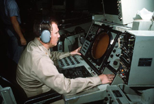 Navy Sonar Operator Sonar systems can be mounted to the hulls of various combat ships, towed behind ships in an array, dipped into the water from helicopters, or attached to free-floating buoys (sonobuoys). Sonar History & Use Developed after World War I in Britain and the United States, sonar technology was kept secret until World War II, when it was used very effectively to counter the devastating attacks of the German U-Boats. During the Cold War, improvements in sonar technology were critical to tracking the quieter, more sophisticated Soviet submarines. These large submarines were most commonly tracked in deep ocean areas, and the Navy invested a great deal of money and resources in understanding the physics of sound transmission in the open ocean. Today, various types of active and passive sonar are used by the Navy to identify, track, and target submarines, to determine water depth (fathometers), and to locate mines. Sonars designed for use in anti-submarine warfare need greater ranges than the others, and therefore have higher source levels. New Focus With the end of the Cold War the proliferation of smaller, inexpensive, extremely quiet submarines in the last decade has created a renewed emphasis on the development and use of sonar to counter this serious emerging threat. Geopolitical considerations suggest that future naval engagements are more likely to be fought in coastal waters rather than in the deep ocean. These shallow waters, known as the "littoral," are much more acoustically complex than the deep ocean areas, and present new challenges for the detection and targeting of submarines. Hunting Submarines Submarines are the ultimate stealth weapon, and in the event of hostilities, they pose a serious threat to both commercial shipping and surface naval vessels. Ship's sonar operators constantly listen with passive sonar for potential submarine sounds, and trained lookout watchstanders scan the horizon for visual indications of submarines. Coupled with intelligence reports of submarine movements, these are the primary tools that ships use to detect submarine threats. Once sonar technicians have identified a submarine sound, they try to determine the type of submarine from characteristic tonal frequencies, and the bearing of the target. To confirm the submarine's proximity, and to more effectively track its movements, the ship may turn on the active sonar for short periods of time. Unfortunately, active sonar also betrays the host ship's position, so active sonar is used sparingly. In fact, 90% of sonar use by the U.S. Navy is passive sonar. Identifying various underwater sounds (from passive sonar) or returns (from active sonar) is very difficult and requires considerable skill. Marine biological sound sources include whale vocalizations, dolphin clicks and whistles, snapping shrimp, and fish choruses. Other sound comes from underwater seismic activities (earthquakes, volcanoes), lightning strikes, heavy rain, and surface waves. Man-made sounds include commercial shipping and other ship sounds, oil dredges, air guns used in seismic mapping, and sonar. Many sources have higher intensities than sonar, and have a far greater prevalence. Sonar comprises a very small percentage of the sound found in the seas. To put Navy active sonar use in perspective, it is important to note that, of the U.S. Navy's approximately 280 surface ships, only 58% are equipped with mid-frequency active sonar. About half of these ships are underway at any given time, and for each ship, active sonar is turned on only a small percentage of the time (during certain types of training and maintenance activities). Chokepoints Most of the world's commercial shipping passes through a number of strategic "chokepoints" such as the Strait of Hormuz and the Strait of Malacca. A chokepoint is an area where the sea-lanes become narrow due to projections of land, rendering the high-density traffic particularly vulnerable to attack. In wartime, an effective submarine tactic is to rest on the ocean floor with propulsion systems shut down, emitting virtually no detectable sound, and simply waiting silently for the adversary to come to the submarine's location. In coastal waters and chokepoints, where merchant shipping, marine life, oil and gas drilling, and fishing vessels create a cacophony of sounds, active sonar is required to discern submarine-generated sound. Such a submarine in a crucial chokepoint can have a devastating effect on shipping, commerce, and naval presence. In addition to the carnage of direct attack, the effect of delaying arrival of U.S. forces to a crisis area gives the adversary submarine the power to impact the final outcome of a conflict without firing a single shot. Littoral Waters During the Cold War, quiet Soviet submarines operating in deep water were often detectable by passive acoustic (listening) technology. Modern submarines operating on batteries and new air propulsion technology are even quieter, and since they operate in the complex shallow water environment, much harder to detect. Passive sonar systems are rendered ineffective in this environment. Water currents, temperature, and salinity variations bend acoustic sonar waves in complex patterns. Rocky features of the ocean floor and debris such as sunken vessels create sonar returns that can be mistaken for a submarine operating near the bottom. Reverberation of sound in rocky areas can camouflage sonar returns. Shipping noise creates additional confusing signatures that must be sifted through. Active sonar is affected by these factors, making real-life training vital to the expertise of Navy sonar technicians. Marine Mammals and Sound Marine mammals also use underwater vocalizations to communicate with each other. Because sound waves travel efficiently in water, some ocean-dwelling animals are able to communicate over great distances through sound. Based on the few marine mammal species for which hearing has been tested to date, it